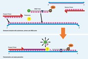 Indem die Temperatur verringert wird, annealen die PCR Primer und die MGB-Sonde an ihre spezifische Zielsequenz. Eine allelische Diskriminierung wird durch ein gezieltes Annealing der MGB-Sonde erreicht (SNP Genotypisierung - Abbildung 2).