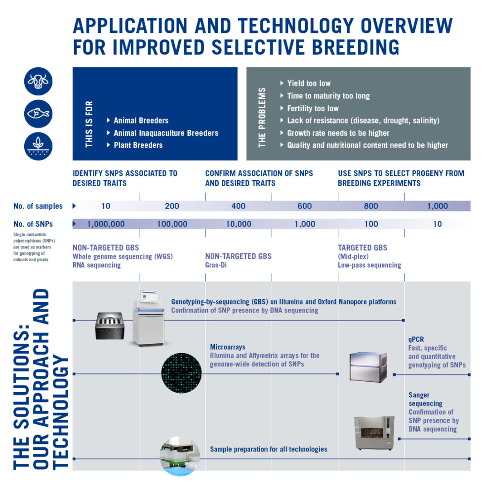 Our Illumina platform and Thermo Fisher Scientific microarray platforms are optimised to service the high throughput and rapid turnaround times that the livestock genetics industry expects.
